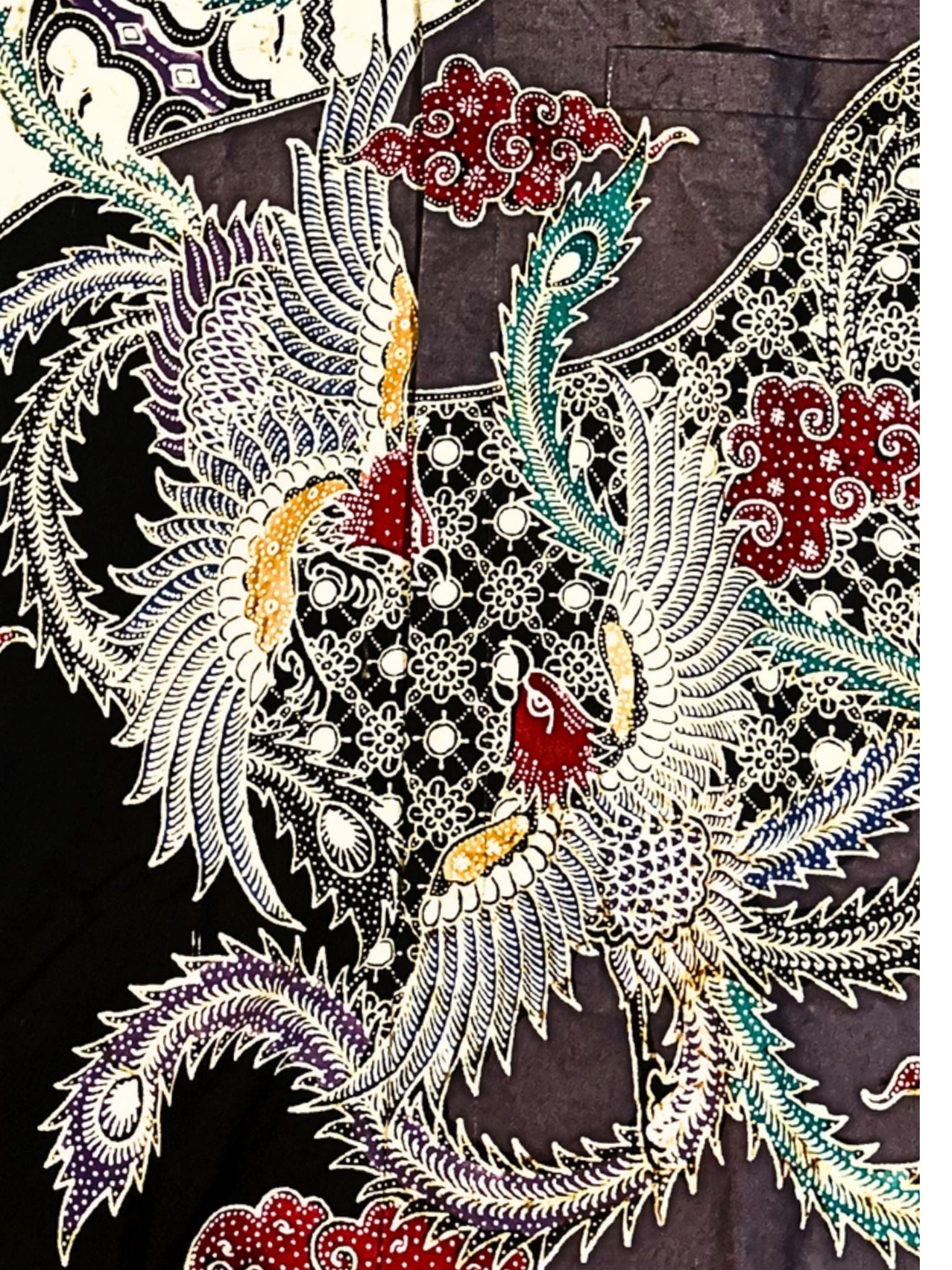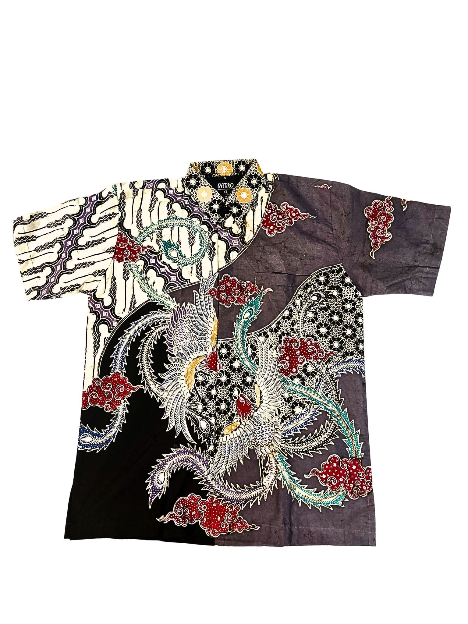 This Unique Pattern Hand Made Shirt Incorporates A Beautiful Twin Bird Design With Red Clouds and Flower Designs Mixed In.