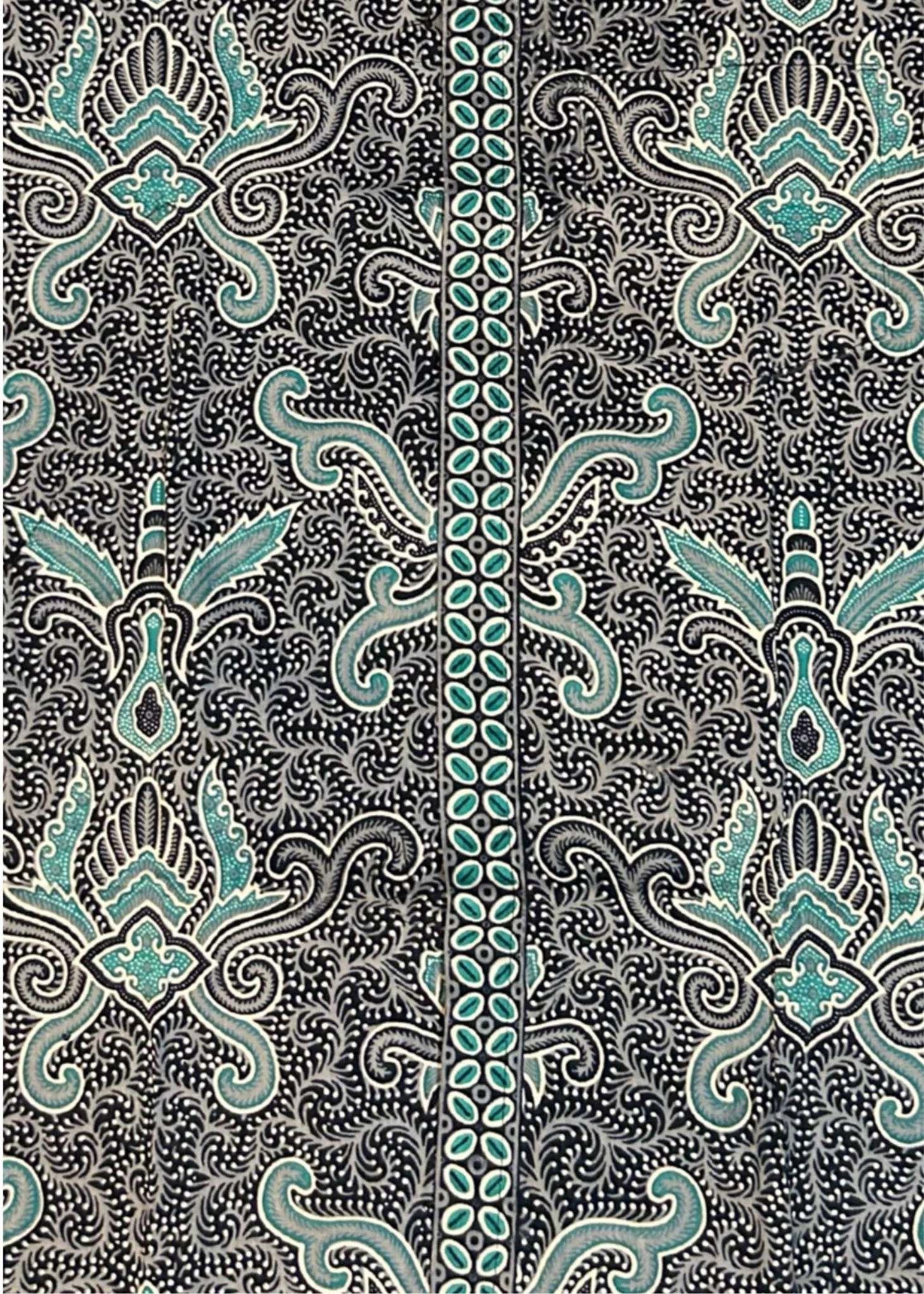 This Majestic Shirt features a beautiful teal flower design with a grey background of swirls.